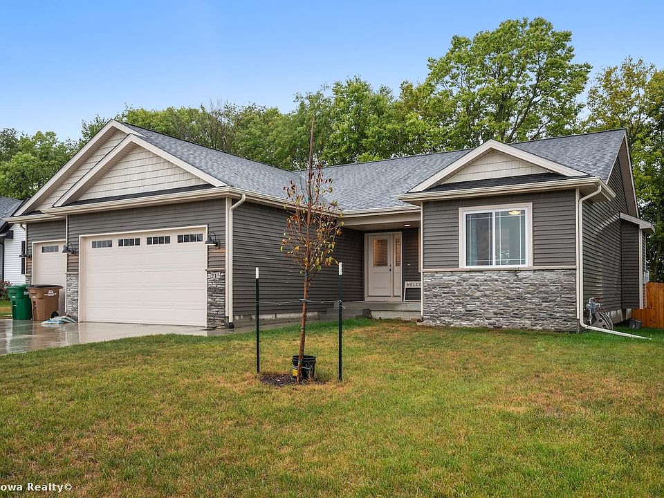 If you're looking for that perfect family home this is the one With over 2,600sqft of finish space, 4 bedrooms, 2 ¾ baths, you will have plenty of room for family gatherings & entertaining. Many of the outstanding features of this home include an expansive, vaulted, family room gas fireplace & large picture windows to the rear of the home that give you amazing views of the Iowa sunsets mature trees and pond. The master bedroom features his and hers closets, tiled shower & dual vanities and has a pass through to have access to laundry. Don't forget the finished basement, 9' ceilings & wet bar, perfect for catching those big games or playing a game of pool or ping pong. Other included features include slide in 2x6 construction, Energy Star rated 8' tall garage doors, fully fenced yard privacy fence on each side, cabinet folding top in laundry, large kitchen island, granite composite sink, front porch, and garage ceiling insulation. Make this one to add to your list today