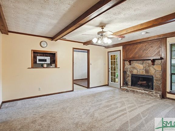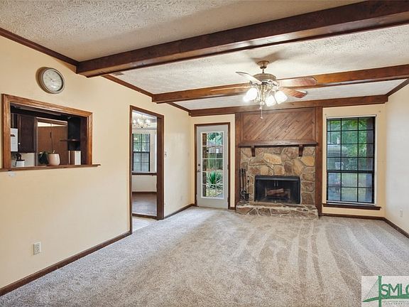 All brick ranch house with lots of potential in sought after Georgetown community. Home features fantastic details like a brick floored eat-in kitchen and wooden beams in the great room with stone fireplace. Two good size bedrooms and a large master with his and hers closets and master bath. New carpet, new exterior paint, a large yard with patio, and a one car garage make this home an excellent choice for a buyer not afraid of a little elbow grease to give it all the updates it needs to be the perfect forever or investment home. Convenient location with easy access to HAAF, downtown Savannah, Richmond Hill, and Pooler. P.S. It's NOT in a flood zone! BACK ON THE MARKET AT NO FAULT TO SELLER.