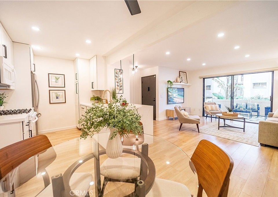 Welcome to 215 Wichita, located in the highly sought-after gated community of Villa Pacifica in Huntington Beach. Here, you’re just minutes from the Pacific Ocean, Downtown Main Street, and the world-famous Huntington Beach Pier and Pacific City—an upscale shopping center with many delicious dining options. If the beach lifestyle is what you desire, don't let this one pass you by: opportunities like this don't come around too often in this location. This cozy beauty offers all the amenities of luxury beach style living: the larger one bedroom floor plan is located on the ground floor and has a spacious living room that opens up to a large front patio— located right off a tree-lined common area green belt. The kitchen has been updated with gorgeous quartz countertops and newer cabinets and fixtures. The bathroom has tastefully updated as well with a newer tub, fixed clear glass shower panel, and decorative tile. The bedroom has an oversized walk-in closet with a stunning boutique feel. There is newer laminate flooring throughout the house as well. As far as this community goes, Villa Pacifica offers great amenities, nothing short of pickleball courts, tennis courts, a pool, a sauna and a hot tub.