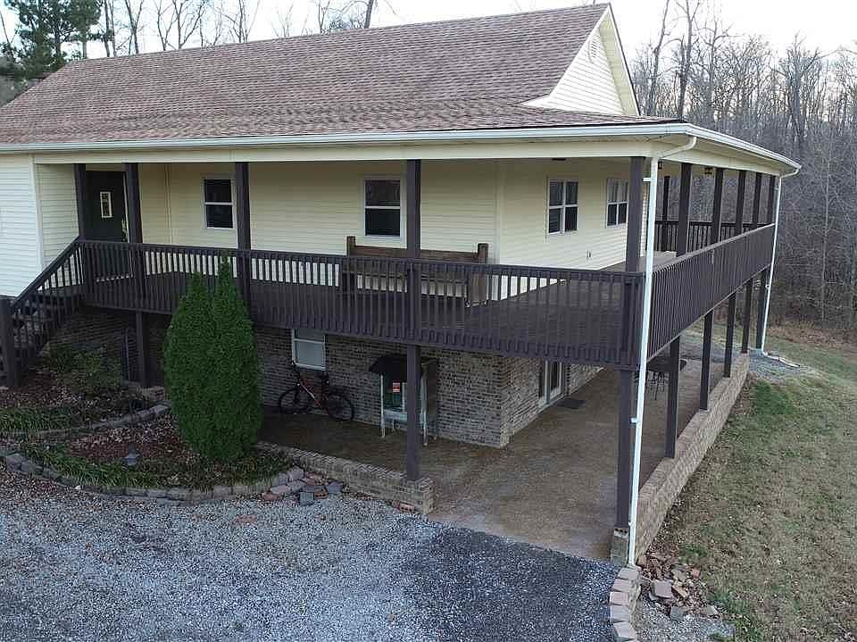 A beautiful, well maintained, waterfront home with privacy and over an 1.5 acres - very hard to come by! This home has 5 bed/3 bath, with another large room that could be a sixth bedroom but doesn't have a closet. The open concept floor plan would making entertaining perfect! The kitchen counter tops and some bathroom vanities are finished out concrete and gorgeous! The main level has a master suite and two additional bedrooms. The basement is a walk out leading to the patio. A family room, additional bedrooms and bath are also downstairs. The wrap around porch is very spacious - perfect place to enjoy the view. Large heated 30x50 detached garage/shop has plenty of room for your lake toys! Owner is applying for dock permit.