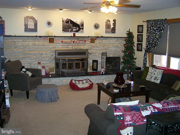 Large ranch located on a 1.34 acre lot. Big living room that has wood burning insert with large brick surround. Very large wide open kitchen with lots of cabinets space, large pantry, granite counter tops, center island with sink and big enough for 5 bar stool seating, and lastly the 13X11 breakfast area with access to the covered deck. Off the kitchen is the dining room with hardwood floors and a large built in. Master bedroom with his and hers double wide closets and private master bath with wide stand up shower. Two more bedrooms complete the first floor both with double wide closets. Downstairs a majority of the basement is finished with family area, rec area with large L shaped bard with granite counter top, and another finished room great to use as an office. And still a large portion left where laundry is located and plenty of storage space. The back yard is immense with a built in pool that is surrounded by a large patio area that has plenty of room for a good amount of patio furniture. There is also a separate driveway through gate of main driveway that leads to oversized detached 5 car garage that is great to use for that car enthusiast or for those who have a small business and need the extra storage. It also has its own 100 Amp electric, workshop area, and is also set up to have propane heat. There is also a rear garage door that leads to the very back of the lot. The entire back yard is completely fenced in as well. There is even more parking space with the 2 car attached garage as well and main driveway that can fit at least 8 cars. Add that all up and there is parking for at least 15 vehicles. This home truly has that country living feel along with having the space inside and out to entertain a large number of guests.
