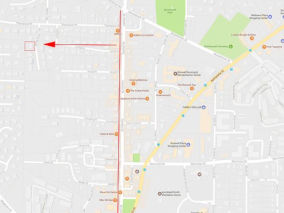 So much potential in this sweet house just steps from Canton Street. Hardwood floors in living room, kitchen, and upper level bedrooms. Renovated kitchen with rich wood cabinetry, granite, & stainless appliances. Casual dining area with view to family room with fireplace and powder room. Beautifully renovated master bath. Great storage space in lower level. Two car carport can easily be converted to garage. Nice patio & backyard. $1MM plus homes right down the street. Rare opportunity in Historic Roswell.