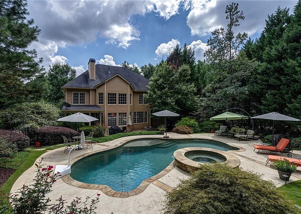 GORGEOUS EXECUTIVE HOME with a HEATED, SALT WATER POOL & SPA (with firepit) in highly desired swim / tennis community of Grand Cascades. Exterior photos were taken last summer so you can see what the property will look like at its peak in just a few short weeks! Explosions of blooming shrubs and flowers everywhere..the grounds are manicured throughout and just gorgeous! Truly fantastic curb appeal with grand columns, 3 car garage and 2 rocking chair porches on the front of the home. Perfect location tucked away near the end of a cul-da-sac on one of the most picturesque, popular streets in this sought after community. Flanked with larger lots & clustered among the larger floor plans in the community - Woodcliff Ct is a stunning section of the community. As an added bonus, this home is walking distance to gorgeous private nature trails that run along the Chattahoochee River in a nature preserve! Don't give up a great yard for your pool when you can have it all - there is still PLENTY of green space for your family fun with this property - both areas are already fenced! The entire house was just freshly painted, new carpet in bedrooms. Hardwood floors refinished a few years ago, all systems have been replaced / updated. Main floor has so much space for entertaining / open concept 2 story family room with the highly desired "wall of windows" overlooking gorgeous pool & wooded yard for so much privacy! Over sized dining room has extra seating area or is also a great space for a piano! Multiple outdoor spaces including a wrap around screened porch right off of the family room. Second floor features 4 very generously sized bedrooms (master suite w/ private bonus room; 2 bedrooms with a Jack & Jill bath; and 1 bedroom w/ an en suite full bath. Laundry conveniently located upstairs as well. Terrace level is finished w/ a full bed & bath suite, pool table room - several large rooms perfect for movies or an in-law / teen suite. Top Schools, close to Shopping & FABULOUS AMENITIES including: jr Olympic pool (area to be renovated after swim season this year - artist renderings available!), kiddie pool, fenced playground, 6 lighted tennis courts w/ pavilions, sports complex (baseball, soccer, sand volleyball), 2 fishing lakes (canoes, kayak & paddle boats) & miles of walking trails located privately within the community in a nature preserve along the Chattahoochee River!