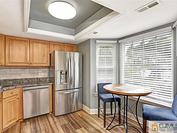 Enjoy a lifestyle of elegance and convenience in this beautiful 2 bedroom townhome nestled in the highly sought-after Society Hill community. This stylish, inviting home features an updated kitchen with gorgeous granite countertops, sleek tile backsplash, modern stainless steel appliances, newer vinyl plank flooring throughout, recessed lighting, a wood-burning fireplace and sliders leading to a scenic fenced in backyard with wood deck. Additionally, this home offers spacious bedrooms, abundant closets and storage space including a large walk in closet in the primary bedroom and a 2nd floor laundry area. Community amenities include a clubhouse, swimming pool, tennis courts and playground all located within close proximity to NYC transportation, restaurants, shopping & township library.