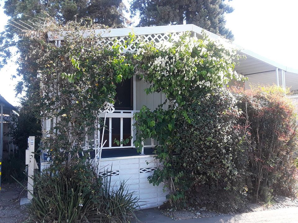 Lovely Place and Community ! In the Willow glen area ! 2 bedroom 2 bath living space open adjoining the dining area with attached cabinetry. Freshly painted living room and dining area with brand new draperies newer flooring. All newer kitchen appliances and washer dryer Separate dressing area with 2 separate mirrored closet doors and built in drawers Lots of upgrading throughout. Located behind a grove of redwoods do prime location in the park side garden patio area storage shed and back yard. New wood front porch and front stairs One of the lowest Lot rent of 805 financing available