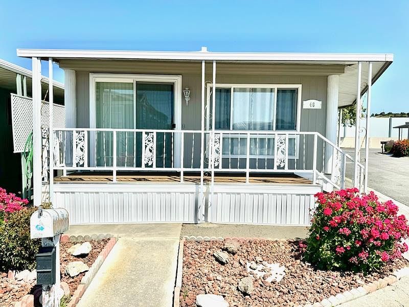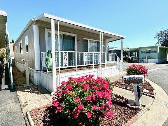 Make offer !! Great Mobile Home Community! And comfortable living in Willow glen ! Double wide 2 bedroom 1 bath dining area with attached cabinetry and drawers, nearly new built in stackable washer dryer, new faucets in kitchen and bath, economy size dishwasher. Underneath earthquake supports,brand new carpeting throughout, newer dual paned windows all around, freshly painted inside and out with neutral color tones. Storage shed xtra large, patio decking on front and side porchs. Low maintenance landscaping. Health and safety report available. Park upgrades completed. Community clubhouse with library, new pool, car wash, billiards. Easy access to shops dining and transportation. Seller perfers as is. Senior age 55 and other person can be 30 and over. Financing available