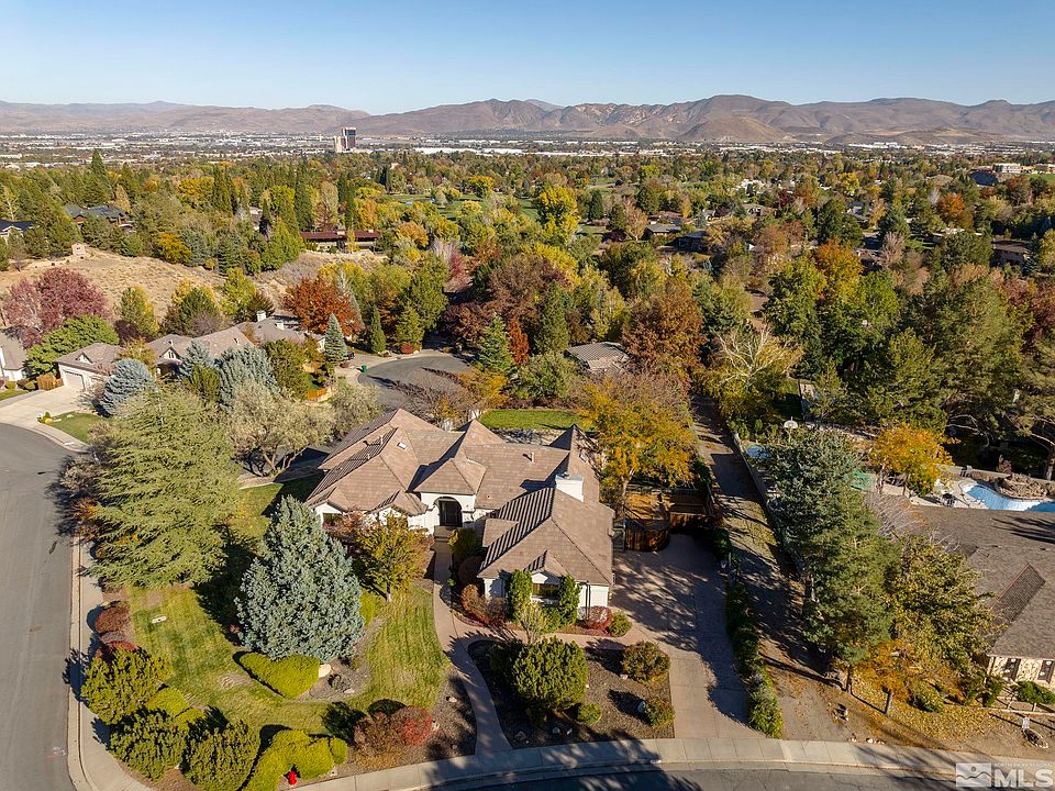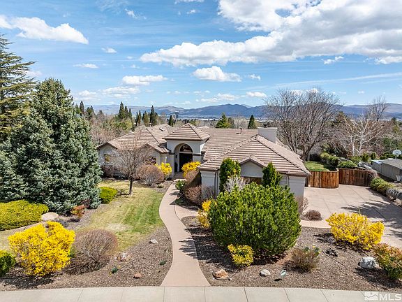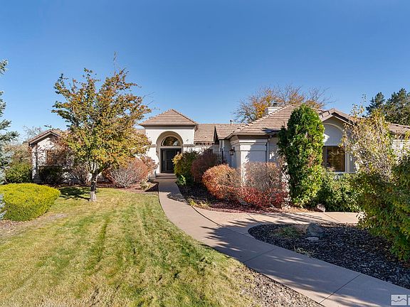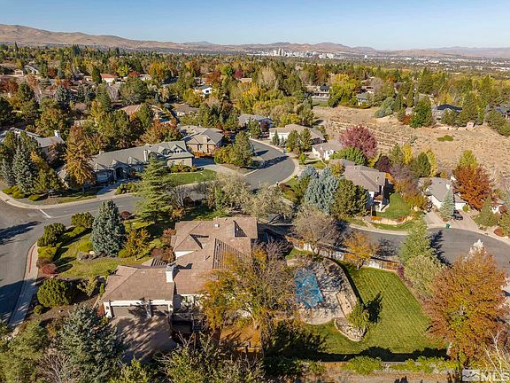 Magnificent home that combines upscale elegance and that natural, cozy "feeling of home" in the heavily sought after Manzanita Estates! Towering trees and mature landscaping surround the large 0.74 acre corner lot, providing the unique charm and calm that SW Reno is known for., Your breath is taken away as you move through the foyer to the formal living room which is highlighted by vaulted ceilings, custom built-ins and large panel windows that showcase beautiful views of mature landscaping and the mountains. The main floor is designed with 3 bedrooms including the master, another full bath and powder room. The kitchen has been upgraded with granite counter tops, antique stained custom cabinetry, gas cook-top, double oven, full pantry, Thermador and Viking stainless steel appliances, built-in espresso machine and is bookended by a breakfast nook and a sitting room with a tile fireplace. The expansive master bedroom has vaulted ceilings, large sliding glass doors leading to a private deck overlooking the property, walk-thru closet and an upgraded, contemporary bathroom. The daylight basement is ideal for entertaining with a large family room, wet bar, enclosed pool table room, 2 guest bedrooms, full bathroom and french doors to the large patio. The custom designed backyard is highlighted by a heated salt water pool with automated cover, jacuzzi, paver terrace, raised garden beds, custom lighting and ample sized grass yard. Other notable features include: hardwood flooring on the main floor, dual zoned HVAC and water heater, fresh ext/int paint, tile roof and stucco exterior.This is the perfect home for a large family or for hosting house guests.