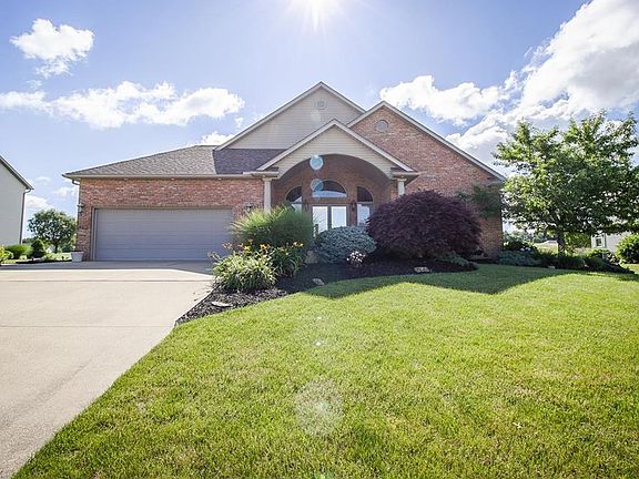 ONE OF A KIND QUALITY BUILT RANCH! Located on the #1 east hole of The Legends championship golf course, this well crafted one owner home was built to last, featuring solid oak trim and 6 panel doors throughout, core poured 12" block foundation and additional joist support. Manicured landscaping adds fantastic curb appeal to the welcoming porch with fiberglass pillars. A double entry door leads into the vaulted foyer with marble flooring and double closets. Rounded walls guide you into the spacious great room with 20' ceiling, wide plank laminate flooring and Palladian window. Through a columned archway, you'll find the open concept kitchen and dining room with quartz counters, granite island with bar seating, tile backsplash and matching white appliances. The split bedroom design provides privacy to the master suite with oversized 2 person Jacuzzi, double walk-in closets, walk-in shower and separate vanities. Two more bedrooms each have double closets and share a full bath with tub/shower combo. A convenient 1st floor laundry with sink and cabinetry complete the main level. A 12-course unfinished basement is just waiting for your ideas to finish! Outside you'll love the view of the golf course from the patio with lighted sidewalk that leads to the oversized 2 car garage. Updates include laminate flooring, kitchen remodel and water heater 2015. If you're looking for superior craftsmanship in the Perry Local school district, this is it!