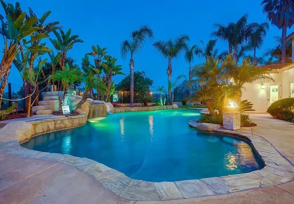 Are you looking for the ultimate entertainer's home with resort-style backyard perched above it all on a hilltop mesa with panoramic views? Check out this dream backyard with a tropical pool, slide, swim-up grotto, BBQ island, fire pit, outdoor shower, and plenty of party space. The perfect great room has several windows overlooking the lagoon-like pool area so you can keep a close eye on the kiddos and it features an upgraded granite/stainless kitchen too! Multi-generational buyers will love the TWO possible bedrooms/full baths downstairs which are ideal for work-from-home or for guests! Other features include hardwoods, new carpet & paint, fireplace, and 35 windows - plenty of natural light!