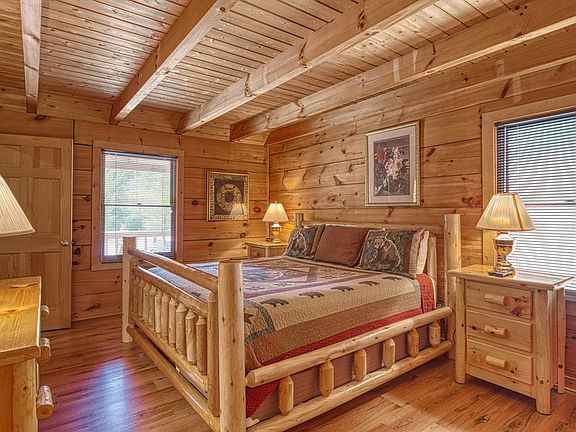 This true log cabin features plenty of space with 3 bedrooms, 3 baths, 2 bonus areas, and even a loft! Recent additions include bonus areas, new back deck, second master bedroom featuring a rustic yet modern master bath. Tin roof, good parking, and plenty of deck space. Conveniently located minutes from the action with no steep roads, but yet nestled away in a wooded setting. This charming cabin could be used as an investment, as it did $67,000 in 2021. Don't miss out and set up a showing today!