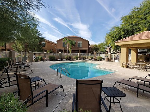 3 BEDROOM, 2 1/2 BATH + A DEN! with 2 CAR ATTACHED GARAGE, CORNER unit, feels like a single family home. VERY QUIET off street, inside back of the complex location.. Contemporary TUSCAN STYLE GATED COMMUNITY. LARGE BACKYARD WITH VIEW FENCE TO GREEN BELT. Private back yard, easy care flowering plantings overlooking greenbelt park. MOUNTAIN VIEWS FROM 2ND FLOOR -- CHOICEST LOT IN SUBDIVISION. Steps to community pool. Smell the grass, enjoy the canopy of overhanging trees, love the profuse bougainvilla. Close to EZ transportation (Rt 51 & 101) + ALL THAT SHOPPING. First floor ALL clean cool tile. GREAT ROOM plan w kitchen island, black appliances. . Full sized Washer & Dryer Upstairs. One building away from mailbox & pool. Cooling ceiling fans throughout.
