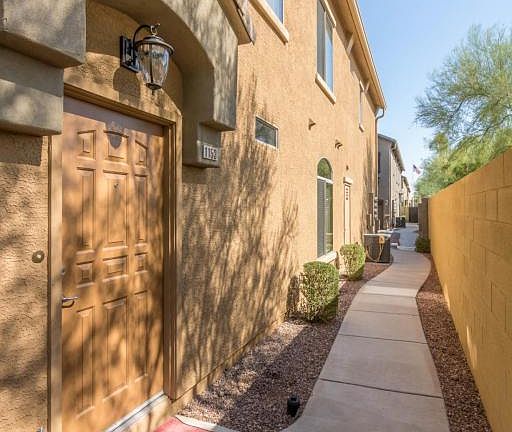 Fantastic Townhouse in the desirable Community of Tre Bellavia. Soothing palette, window blinds, New ceiling fans, beautiful upgraded tile floor, and plush carpet in all the right places. Stunning eat-in kitchen features granite counters, breakfast bar, pantry with NEW SS appliances, NEW Garage door opener, New bath faucets, Newer Water heater 2015, and wood cabinetry with stylish hardware. Interior laundry room. Fridge, Washer/Dryer Convey! Patio access from great room with lots of natural light throughout. Generous size bedrooms, ample closets.Enjoy the backyard with citrus and fig trees, covered paver patio with room for a garden! Meticulously kept community pool and lush green common areas! Close to Shopping, Dining, 101, & 51. Will NOT disappoint. HURRY! Turn Key ready for the movers!