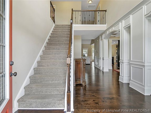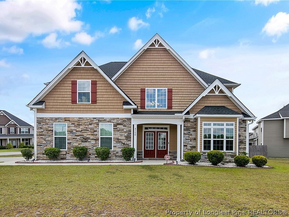 Welcome to this beauty of a home located in the Village at Rockfish! 5 bedrooms and 3.5 baths with the primary bedroom on the first floor offering an option for an upstairs secondary master bedroom/in-law suite. Formal living and dining room adjacent to a well appointed kitchen with granite topped oversized island, double ovens, gas cooktop, and eat in kitchen. The master suite includes a large sitting area, tiled shower, private water closet, soaking tub, and great sized closet. Driveway has an additional paved parking pad, the yard has an irrigation system, and the garage has been insulated. Conveniently located with easy access to Ft. Liberty, I95, Hwy 87, schools and shopping. Enjoy the screen back porch inside of the fenced backyard or head over to the community pool to cool down on a hot summer day. Add this one to your list!