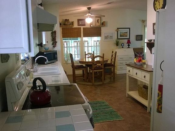 REDUCED PRICE!! THIS 1144 sq. ft. Victory home has been completely renovated. New kitchen and bathrooms plus tile floor throughout. Brand new plumbing above and under home. Large 260 sq. ft. lanai with beautiful views of woods and water. Deck and new brick patio. Most furniture stays, golf cart, and washer and dryer. This home is a must see. Perfectly priced. Beautiful Backyard Views!