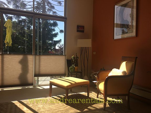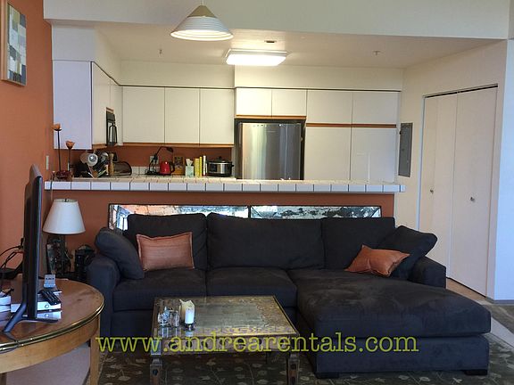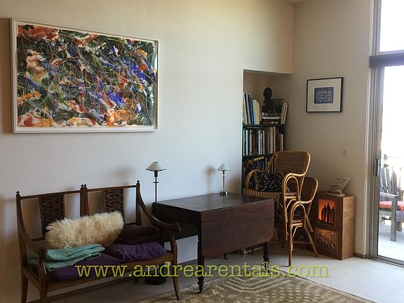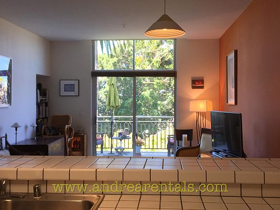 Sweet 1bed/1.5bath furnished apartment, centrally located in the University Terrace complex, yet tucked away from the hustle and bustle of the city. This lovely unit is light filled and serene and just one easy mile to UCB. The large open kitchen is fully stocked with everything you will need - gas range, oven, dishwasher, microwave, and refrigerator, plus pots, pans and staples. The living room has vaulted ceilings, a large TV, comfy couch, an armchair, and a foldaway table that can seat up to 4. The space has a very tranquil feel as it overlooks the treetops of the large shared outdoor space in the center of the commons. A sliding glass door leads out of the living room to a private patio, with wood chairs, table, and umbrella. The sunny bedroom has a wall of windows overlooking the green courtyard with ample closet and clothes storage space. Full bath has a shower over tub combination and there's an extra half bath located by the front door, perfect for entertaining. Washer and dryer located off the kitchen. Fantastic location, 2 blocks away from University Ave. 13 minute walk to Downtown Berkeley Bart. 7 minute bike ride to campus. Half a mile to Trader Joe's. One dedicated parking space included. This unit is furnished. Sorry - it can't be offered unfurnished. No pets - though allergic folks should know that cats have lived in the unit in the past. Low pile berber carpet throughout. Building has stairs and elevator, and front door is through an interior hallway. All utilities (including high-speed internet) are included with a $150 monthly flat fee. Showing by appointment only. Please email to take a look! Stephanie DeMott, BRE #02007384 stephanie@andrearentals.com / 415-203-5230 AndreaRentals, BRE #02003472 AndreaRentals: A Rental Concierge for Bay Area Owners and Renters www.andrearentals.com Tenant pays $150 Flat Fee for Utilities.