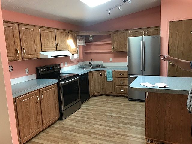 This is a beautiful 1994 Redman with the Alaska Specs(higher insulation, tie downs),custom built 9x13 shop, with 6x8 Rubbermaid shed behind it,covered front and rear entries, covered 2+ carport, handicap access with guardrails, new heat pump in 2019, new hot water heater in 2019, newer Samsung appliances included in kitchen and laundry,, vaulted ceilings, two different sky lights, composition roof, wood laminate in kitchen, carpets in great condition