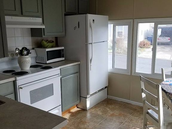 Located in a 55+ Mobile Home Park. Space rent is $565 per month. Must be approved by park. Large lot with fenced in yard, carport with shed plus 2 extra sheds in the enclosed back yard. One shed has built in counters and tool storage! Lot is bigger and more private than most in this park. New interior paint, New laminate flooring in living room and bedroom, Well maintained oven, range and refrigerator. Linoleum flooring in Kitchen. Newer counter tops and cabinetry. Garbage disposal, Updated bathroom with granite counters, new sink, new mirror and lighting, Wood burning stove in living room, Newer, dual paned windows throughout, heat pump * New dog park located across the Street! * Clubhouse with pool table, library, full Kitchen and exercise room.