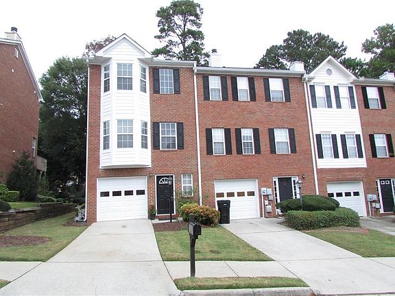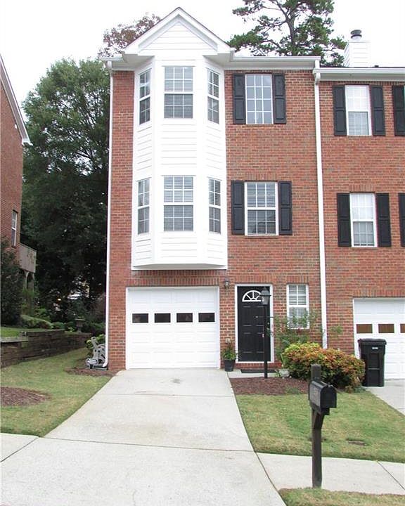 Stunning all brick end-unit townhouse in sought after Buford location. Light-filled 3 story layout with double bay windows, high ceilings, hardwoods on lower and main levels. Freshly painted throughout and well maintained. All 3 bedrooms feature en suite bathrooms. Spacious bedroom or flex space with full bath on lower level. The main level open living space features hardwoods, bay window, fireplace, kitchen with breakfast bar, dining area, an elegant half bath and access to private deck through double doors. Upper level serene master suite with walk-in closet and spa bath, view to backyard. On the upper level is another large secondary bedroom with bay window and full bath. Rear deck overlooks private, usable backyard with mature landscaping, small pond, brick patio. Quiet subdivision, low HOA fees, great schools, convenient to Mall of GA, shopping, restaurants, I-85, I-985 and much more!
