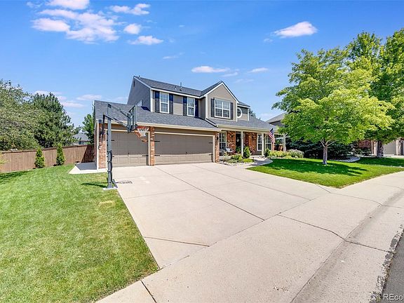 This Sanford built, Westport model is a breathtaking Highlands Ranch home that epitomizes elegance and comfort. This remarkable residence boasts 6 bedrooms and 5 bathrooms, all set on a nearly one-third acre. The property’s curb appeal is undeniable, featuring an inviting front porch. Upon entry, you are greeted by a grand two-story foyer. The main floor has new durable luxury plank vinyl flooring, offering a seamless flow through the home's functional spaces. This almost entirely remodeled home showcases timeless finishes that exude sophistication and charm. At the heart of the home lies the kitchen, open to a light-filled family room complete with a cozy gas fireplace and custom built-ins. The eat-in kitchen is perfect for casual dining, offering views of the meticulously maintained backyard. With new smart kitchen appliances, this space is a dream for any home chef. Adjacent to the kitchen is a spacious dining room. The bright living room provides a serene space for enjoying a good book. The main floor also features a versatile office that can easily double as an additional bedroom. A recently remodeled half bathroom and a large laundry room, with convenient access to the backyard, add to the home's functionality. The second level features an oversized primary retreat with a cozy sitting area, a remodeled five-piece bathroom, and a generously sized walk-in closet. The second floor also includes three spacious secondary bedrooms, one with an ensuite full bath, while the other two share a connected bathroom. The recently remodeled basement is an entertainer's paradise. It features a well-equipped wet bar, and a large guest bedroom with an ensuite bathroom, perfect for guests. Homes like this, with their unique blend of classic charm and modern upgrades, do not come along every day. Whether you are enjoying the large sun-drenched Trex deck, relaxing by the firepit, or unwinding in the hot tub, this home provides the perfect backdrop for creating cherished memories.