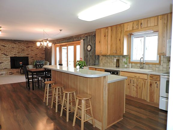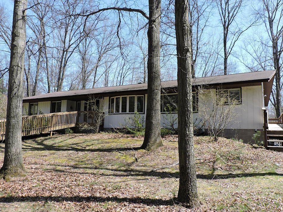 FOR THE DISCRIMINATING EQUESTRIAN! Outfitted with a 68x120 Amish built indoor riding arena plus a 56x72 10 stall horse barn (5 are built) with water, gas and electric, the equestrian in the family will be in seventh heaven! This home sits on 9.3 acres with 2 ponds, in Midland Public schools with city water and is very private. The home itself has gracious space with an updated kitchen with solid surface counters and hickory cabinets. The owne