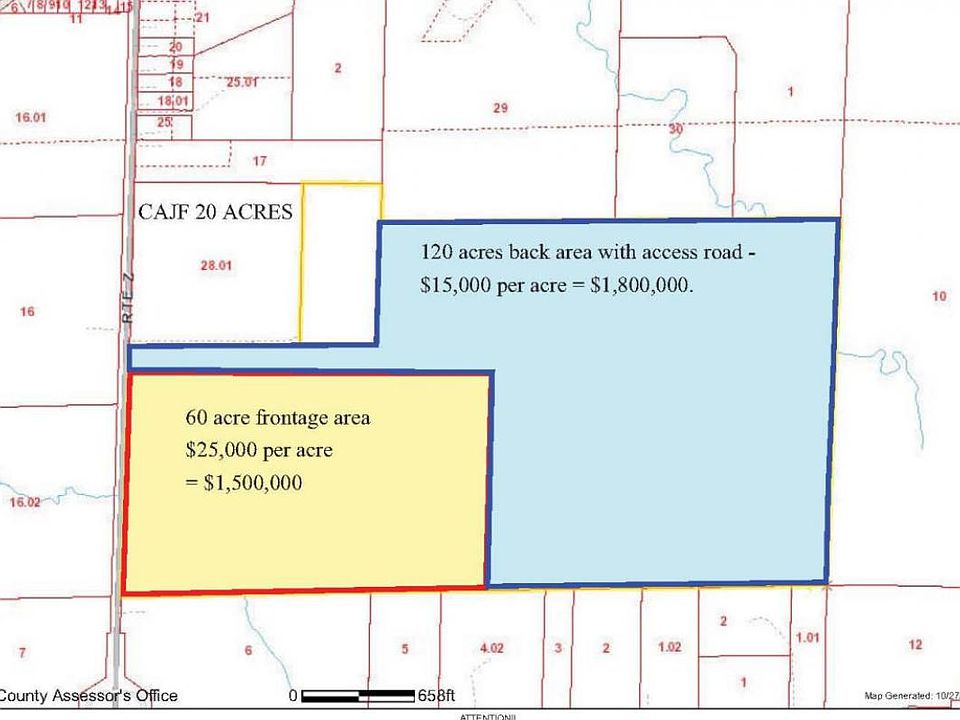 120 acres with access on Rt. Z. just north of Camping World RV. about 1/4 mile off I-70.Lays level. Excellent for potential commercial/industrial development.Seller may divide.