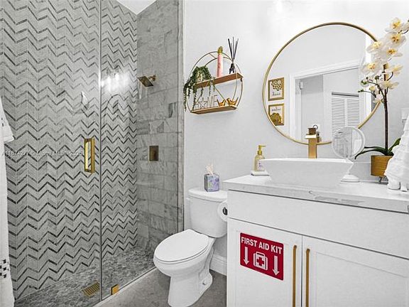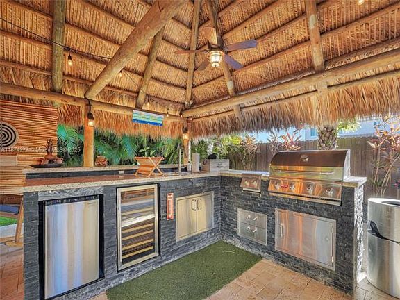 Stunning 4,800 sq. ft. estate on 1/2-acre lot, fully renovated in 2024 and move-in ready. Features impact windows, 36x36 porcelain tile floors, and a chef's kitchen with island, induction cooktop, double ovens, commercial grade refrigerator and freezer as well as soft-close cabinets. Wood floors upstairs and spa-style marble bathrooms with frameless glass showers. Enjoy a private movie theater, professional gym, and premium furnishings throughout. Outdoors, unwind in the 35 ft. heated pool & spa, entertain at the 20x40 ft. tiki bar with full kitchen, or relax in the expansive backyard with travertine pavers. Covered RV/boat canopy included. A turnkey luxury retreatschedule your private tour today! Easy to show.)