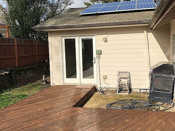 Taking offers until February 15th. If wanting to view home, I can unlock door and remain in my car and answer any questions by text. This 4 bedroom 1 story house sits in a secluded neighborhood, just two blocks west of the Timberhill shopping center, providing easy access to groceries, coffee shops, retail, restaurants, and free bus service. The house is built on a spacious corner lot with front and rear lawns. The backyard features a large deck, stonework, irrigation, and 100% closed in fence for your family and pets to enjoy privacy and security. There is a two car garage with a built in work bench. The living room, family room and 2 bedrooms have beautiful oak flooring. Roof mounted solar panels provide a discount on your electric bills. Sky Lights in 4 rooms provide abundant natural light.