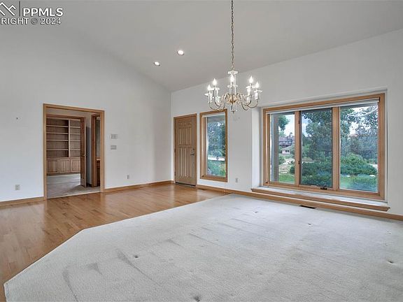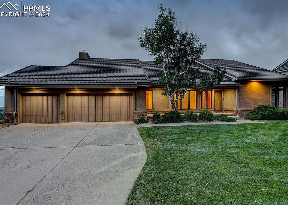 Bask in natural light and an abundance of Colorado beauty in this 5 bedroom, 4 bathroom custom home. This 4,958 square-foot masterpiece sits on a huge 36,537 square-foot double lot in the coveted Hunters Point community in Rockrimmon. With a one-story ranch layout and a finished walk-out basement, this home offers ease of living in a light and airy setting with plenty of privacy. In the luxury kitchen, you’ll find granite countertops, an in-island Thermador cooktop, stainless steel appliances, and plenty of custom cabinet storage. The living area features vaulted ceilings and abundant natural light, complemented by a cozy fireplace. From the large windows and skylights, you can watch the weather systems and wildlife drift by from the comfort of your home. This stunning property is packed with luxurious features designed for comfort and convenience. Enjoy built-in speakers and a central vacuum system for easy and efficient cleaning. The basement offers a wood-burning fireplace and a full wet bar, perfect for entertaining. Additional features include a built-in humidifier, a radon mitigation system, a sump pump, and a new high-efficiency HVAC system for year-round comfort. Brand new Anderson doors and windows enhance both energy efficiency and aesthetic appeal. Nestled close to trails and surrounded by wildlife, this home provides easy access to Colorado’s outdoors without sacrificing convenience. Step onto the large deck for sweeping views of the iconic mountain range and breathe it all in. You’re home.