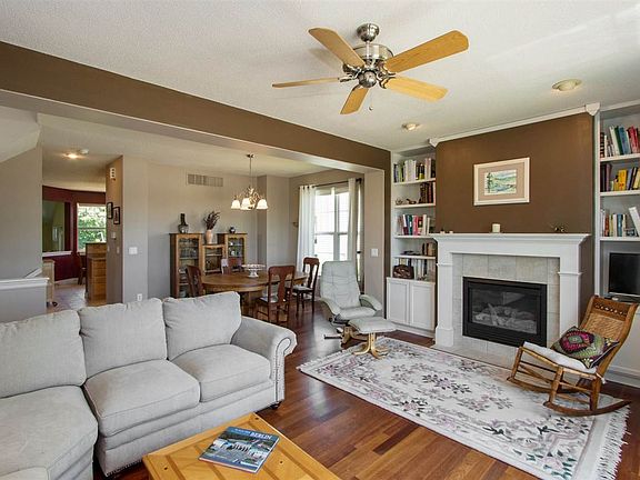 Nicely presented Coralville multilevel with unique layout and design. Living/dining room with Brazilian cherry floors and crown moldings with dentil detailing; eat-in kitchen with raised breakfast bar, maple cabinetry, tiled backsplash, built-in desk area and stainless appliances; sunken main level family room with vaulted ceiling and access to back patio. Two fireplaces, upper level laundry, 9' ceilings, and 2 car garage. Recent updates: new stackable washer/dryer, hot water heater ('18), interior paint,