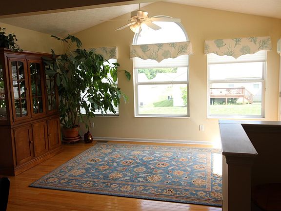 Walk in to easy flow living. Open concept with vaulted ceilings, fireplace and surround sound. Convenient access to large deck for entertaining. New neutral carpet 2016.Master bedroom with luxury tub. 1st floor laundry. Homestead taxes.