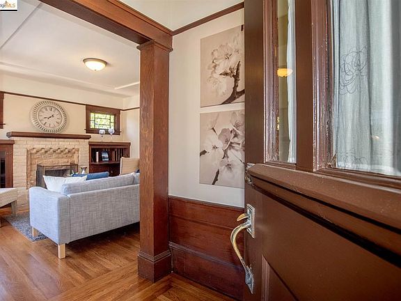 Charming renovated 1920 Bungalow with many original Craftsman details including beautiful woodwork, wainscoting, gorgeous stone fireplace, built-ins, & sliding glass wood doors between living & dining areas. Renovations include a two-story modern design foundation support system w/many seismic upgrades, newly refinished hardwood floors w/a radiant heating system added, plumbing upgrades include copper piping and a tankless water heater, electrical wiring upgraded, updated kitchen w/lots of cabinets & counter space, stainless-steel appliances including a gas stove, remodeled bath w/a shower inside a clawfoot tub, insulation added under roof, sewer lateral already replaced, new exterior paint, new interior paint and much more! Fenced level spacious backyard w/many fruit trees & a detached garage. Most of the long driveway is fenced to provide space to park vehicles securely off-street. Excellent lower Elmwood location near restaurants, BART, parks & only 2 blocks to Berkeley Bowl Market.