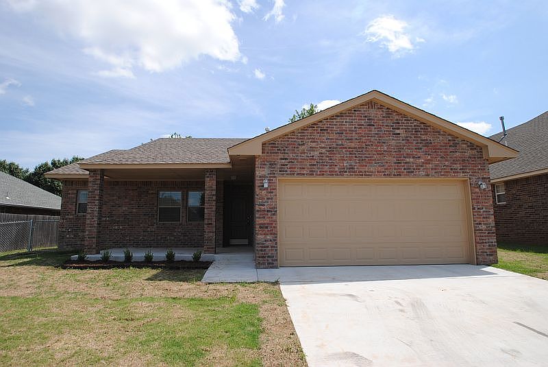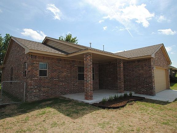 Built in 2014!1100 sq ft, 3 bed 2 bath, 2 car garage,open floor plan, tile in kitchen, living, and bathrooms, carpet in bedrooms, beautiful stained cabinetry, spacious pantry, kitchen nook, walk in master closet, new appliances, fenced back yard, covered front porch, mother in law plan, laundry hook ups in garage with built in custom cabinetry above! minutes from Tinker. Pets allowed! $250 non refundable pet deposit per pet, can be paid out monthly! Rent will be drafted from tenant checking! Credit check!$1200 monthly rent, $1200 security deposit with minimum 1 year lease. Will lease to own! Pets must be approved!