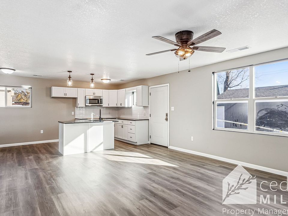 This 2 bed, 1.5 bath duplex has been completely gutted and remodeled. The home features all new plank flooring throughout, new lighting, new windows, ample living space with a functional dining room. The bathroom is all new with tile shower surround, new vanity and new lights. All 2 bedrooms are ample and provide plenty of space. You will notice unique paint details throughout. The kitchen has been completely remodeled with new floors, new granite counter tops, new cabinets, sink, paint and lighting. All new stainless steel appliances will be provided once a tenant moves in. Past the kitchen is the laundry room with washer and dryer hookups and a half bath. The back yard is shared. Back unit will mow the back and front unit will mow the front. One garage space is dedicated to each unit, which is accessible through the alley. The entire rear of the property will be enclosed with a wooden privacy fence. Water is included in the rent rate! No pets, no exceptions. One year lease minimum. *Stainless steel appliances will be provided at move in. Range/oven, dishwasher, and side by side refrigerator with water and ice maker. Rent $995 Deposit $995 plus $150 move in fee App fee $40/adult