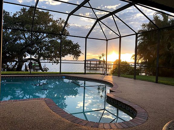 Tucked away in a quiet neighborhood, this beautiful property boasts over 100 feet of river frontage protected by a natural coquina seawall. Watch the dolphins play while floating in the gorgeous screen-enclosed pool. kitchen remodel includes custom cabinetry, S.S. KitchenAid appliances and granite countertops. Roof 2018, Hot and Cold waterlines 2016,