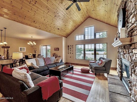 MOTIVATED SELLER! Enjoy the views from this 4 bed, 3 bath twin home w/ boat slip on Detroit Lake in Golden Bay Shores. Unit features: vaulted ceiling living room, wood floors, stone gas fireplace, custom kitchen cabinets, granite island, SS appliances, open dining with patio doors leading out to expansive lakeside deck perfect for entertaining or taking in a quiet evening sunset, large master suite, additional main floor bedroom that can also be used as an office, lower level bonus room/family room, mini bar, additional gas fireplace, large screened porch, attached double stall garage and much more! Living room, dining room and main level furniture included! Dues cover exterior maintenance, lawn care, snow removal, dock install & maintenance, heated pool, walking paths & fishing pier.