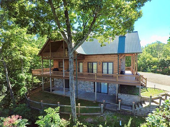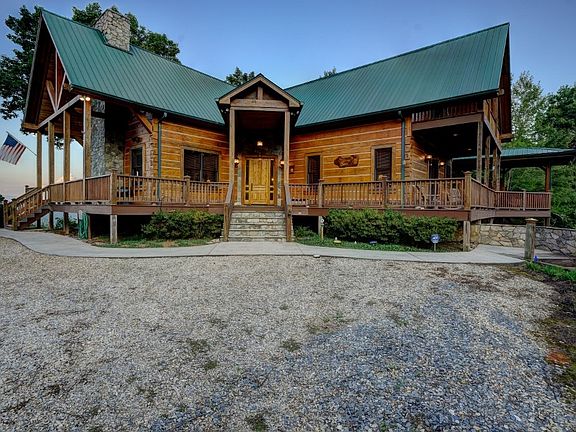 Nearly 4000sft ,this CUSTOM log cabin is EVERYTHING you imagine a mountain dream consists of! All the cabinetry was hand hewn and custom designed from local timber and craftsmanship, down to the hinges! A majority of the cabinet hardware was all hand forged by a local blacksmith and the cabinetry was built from reclaim old barn wood! Every minute detail was thought about to make this THE dream escape! And the views? HOLY MOLY! Miles of mountain ranges!! On the main floor you'll find the spacious master suite, vaulted open family room with a massive wood burning stone fireplace, spacious laundry/mud room and a kitchen to die for with the most beautiful granite I've ever seen! Upstairs is the game/billiards room overlooking the family room and 2 spacious private bedrooms with a shared bath. The finished basement features radiant heated floors w/European engineered hardwood floors, a cozy TV/media room with reclaimed wood walls, an 1890'S nickle antique wood stove, full bath, a very large bedroom and access to the 2 car oversized garage! Multiple wood throughout includes, hickory, hemlock, cherry, wormy chestnut! YOU MUST VIEW THE 3D VIRTUAL TOUR! 4 full size bedrooms! (3bdrm septic)