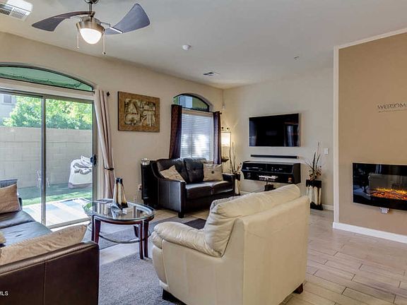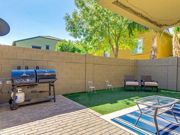 This beautiful home located in the fantastic Villagio at Happy Valley features silhouete sun shades, Honey Comb top down shades in bedrooms for privacy, dual zone Nest thermostat, Porcelain tile, built-in storage in garage, and epoxy garage floors! Lovely eat-in kitchen includes stainless-steel appliances, tile back-splash, breakfast bar, island that adds counter space, and beautiful light fixtures. Sit back & relax in the cozy backyard with synthetic grass & paver patio. This outstanding community offers resort-like pool, and lush grass areas!