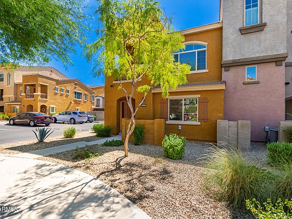 Discover this exquisite end-unit townhome in the gated community of Villagio at Happy Valley. Venture into a spacious great room featuring vaulted ceilings, clerestory windows that fill the space with natural light, a neutral palette, and easy-to-maintain tile flooring. The kitchen is equipped with granite counters, abundant wood cabinetry with crown molding, contemporary track lighting, stainless steel appliances, and a peninsula with a breakfast bar for quick meals. Both main bedrooms offer plush carpeting, a walk-in closet, and a private bathroom. Enjoy a breath of fresh air and stunning community views from the comfort of the balcony. Close by, The Shops at Norterra offer an abundance of shopping and restaurants! This value won't disappoint!