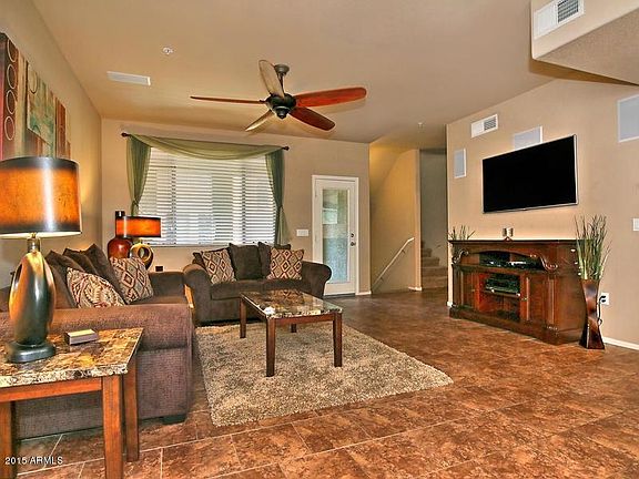 Spotless tri-level three bedroom, 2.5 bath townhouse in the Gated community of Villagio at Happy Valley in North Phoenix. One of the larger models features Open Great Room floor plan with a Large open kitchen, granite counters, center island and all appliances. Beautiful master suite with dual sinks and walk-in closet. Tile in all the right places, a private balcony, two car garage, water softner, security system(not hooked up, Flat Screen to stay, surround sound, The Nest System - community pool & heated spa, this townhouse is ideally located, close to the shopping, dining and entertainment at the Shops at Norterra and Happy Valley Town Centre. Minutes from highway access to the I17 and 101. Seller including front loading dryer and VRT steam washing machine. Shows like a model! Community Pool, Community Pool Htd, Community Spa, Community Spa Htd, Gated Community, Near Bus Stop