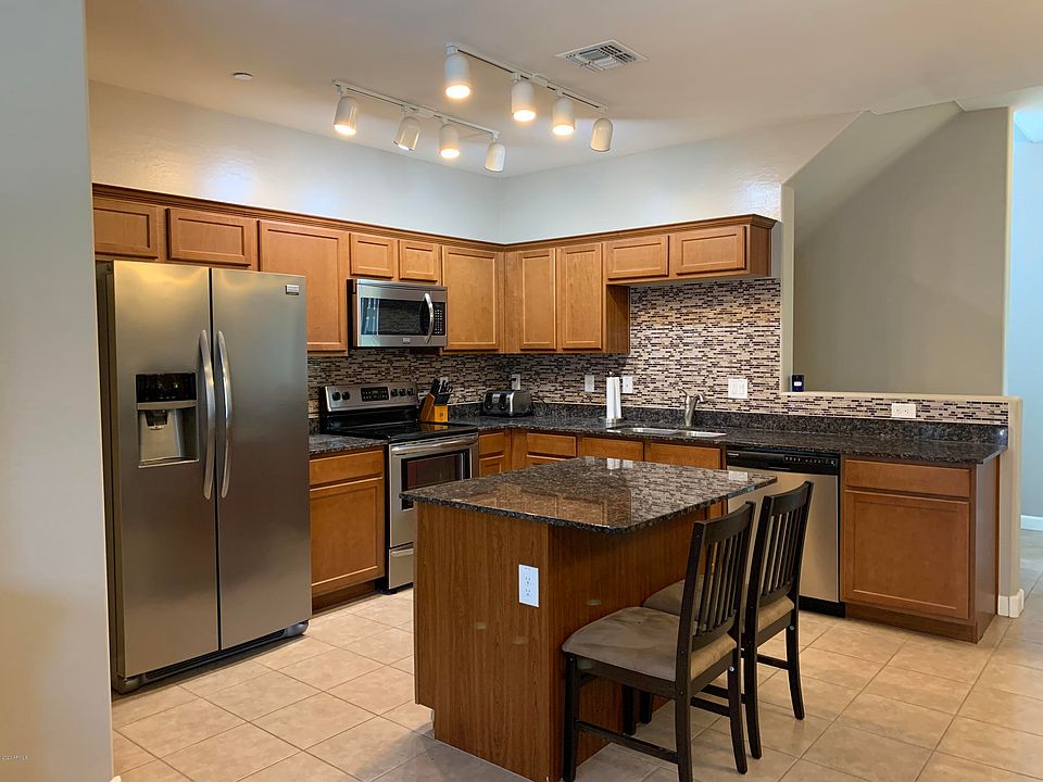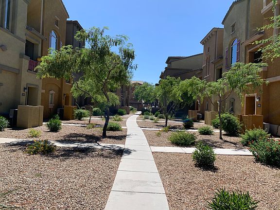 This three-story condominium townhouse in North Phoenix fits the bill for a home buyer. It has an open-concept great room on the second floor with a dining area, an upgraded kitchen with granite counters and stainless steel appliances, and a half bath for guests. A balcony and pantry are on the same floor. Two master bedroom suites, each with its own full bath, plus a laundry room are located on the 3rd floor. The home's entry hall and a large two-car garage are on the first level. The gated community features an attractive swimming pool and spa and well maintained landscaping