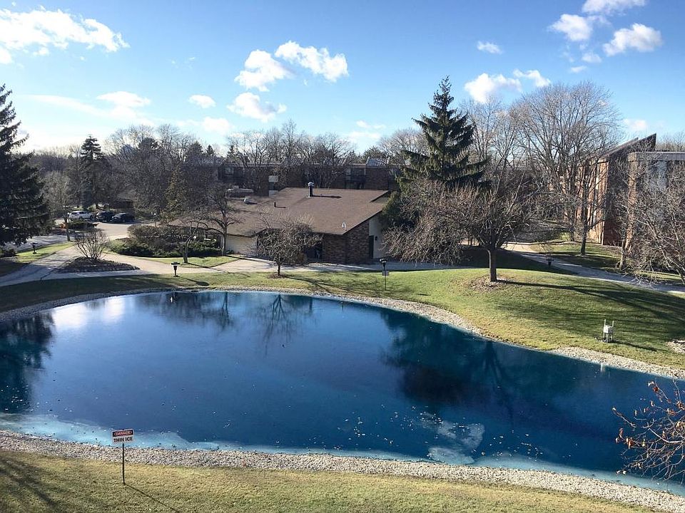 Gorgeous updated unit w/fabulous view of the pond. 3rd floor balcony so enjoy the beauty of only the sky over your head. New high end Marvin patio doors & new blinds. Unit w/open concept floor plan, updated BA & fabulous KIT. Spacious LR w/ beautiful laminate floor. Gorgeous floor continues to the DR & KIT. Updated KIT w/new SS appliances & beautiful backsplash. Need to expand your DR table for extra guests-not a problem. Open concept floor plan will allow you to add a table leaf or two. Unit is conveniently located near the laundry room. Indoor parking, storage locker, pool & club house.