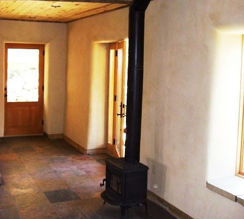 Straw bale home. All aspects of this home are green built. All natural clay interior and exterior stucco, in floor heat/boiler system, passive solar. End of the road privacy, bordering hundreds of acres of protected open space.