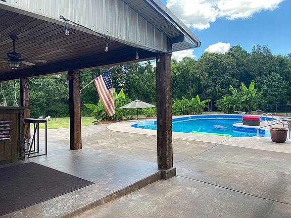This is a great opportunity to live secluded but a short 10 minute drive to I85 and about 20 mins to I77 and is convenient to multiple cites. This house is perfect for entertaining friends and family with the large open concept and beautiful outdoor space. Everything about this 2,245 sq foot brick ranch style house is big featuring a large full on Master suite with a split floor plan. Master suite has a 5’ x 9’ walk-in closet plus an oversized closet and spacious master bath. 2 large bedrooms on the opposite end of the house with a potential of closing off the dining room for a 4th bedroom (has a closet & another open dining area). The other bedrooms also have large closets and an additional large hall closet. Laundry room with LG washer & dryer and another large closet. Fully open concept with 12’ cathedral ceiling, large great room that is open to the kitchen and an eat-in or congregated area that have hand scraped Teak floors. Kitchen is also open to the great room and has great storage with large attached bar. French doors led off this open area onto a concrete & brick porch that overlooks an oasis with a 40’ in-ground heated salt water pool. Pool has a robot vacuum cleaner included. Both the side and front yard have Japanese Cypress trees (no leaves) lining the property giving lots of privacy for the pool & back yard. Adjacent to the pool is most men’s dream garage measuring 30’ x 40’ with concrete flooring and a 10’ x 40’ overhang with built in finished bar. Ceiling and walls are all finished in pine and cedar. Building is finished inside with full electrical heat, air and lighting. Garage has a 10’ x 30’ loft storage and comes with an 80 gallon air compressor, and has a 10’ x 10’ overhead electric door and two man doors. It has scissor truss and steel ceiling. Outside of the house is low maintenance with brick to the gables, siding overhang with brick/concrete front porch that has composite railing. House is over 200 feet off the road with a concrete drive and oversized attached garage. It sits on over 3 1/3 acres of land backing up to a wooded area. House is being sold 'As Is'. There are repairs needed in the Master Bathroom.