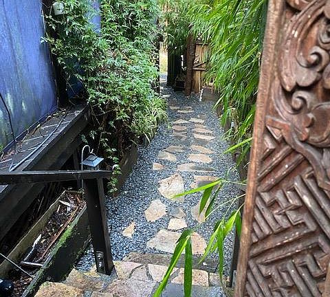 Former vacation rental called Far Reaches, this is a unique 2 bedroom 1 bath home. Fully fenced private yard with a meditation bed (no mattress provided), a truly serene setting. Up the stairs and behind the gates to the main outdoor living area. Large wrap deck with a hot tub, outdoor dining and lounging, outdoor shower and separate attached room, office space maybe. Enter the house: Living room with office nook, 2 bedrooms and updated kitchen. Owner pays water, hot tub maintenance and some yard maintenance. No Smoking. Small pet only. No cannabis cultivation. Limited parking. Tenant pays all utilities and services except hot tub maintenance. Periodic yard maintenance paid by owner.
