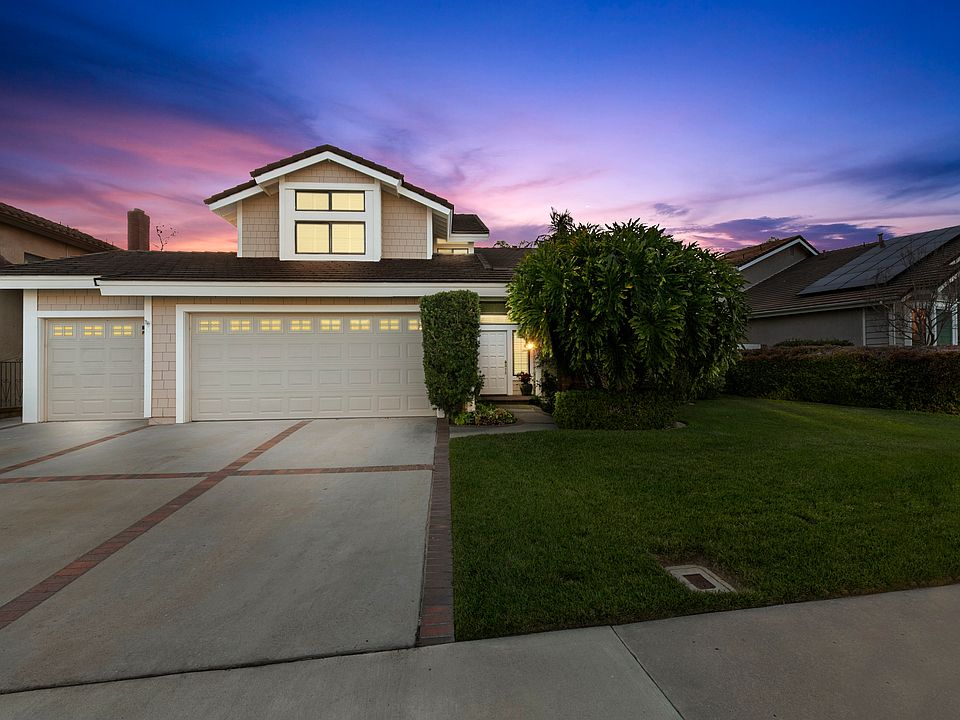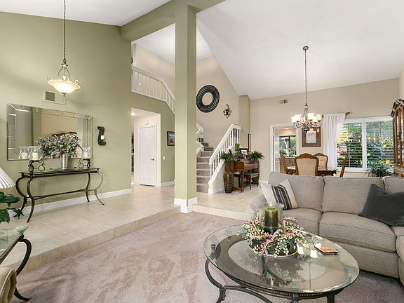 Nestled in the heart of Lake Forest's beautiful Santa Rita Ridge neighborhood, this spacious 4-bedroom, 3-bath home showcases countless custom upgrades inside and out. Mature landscaping and fresh exterior paint combine to create unparalleled curb appeal out front, and privacy is enhanced in the backyard thanks to a generous homesite that backs to a large and scenic greenbelt. Enjoy a refinished and fenced pool and spa with new heater, a fire pit and covered patio. Approximately 2,509 square feet, the 2-story residence opens to a dramatic 3-tier staircase, and an impressive step-down living room and formal dining room with vaulted ceiling. An ensuite bedroom is located downstairs, and the family room and kitchen area hosts a brick fireplace with custom built-in entertainment center, a breakfast nook, granite countertops, custom cabinetry with glass uppers and wine storage, and stainless steel appliances. Double doors introduce a luxurious master suite with vaulted ceiling, mirrored wardrobe doors and an elegant bath with tiled soaking tub and separate shower. Powered by Tesla solar panels, the move-in-ready home is distinguished by an attached 3-car garage, designer paint, plantation shutters, custom base molding, new air-conditioning and a new water heater. Santa Rita Ridge is convenient to Pittsford Park, which features tennis courts and a playground. Outstanding schools serve the community, and shopping centers, restaurants, and business parks are moments from home.