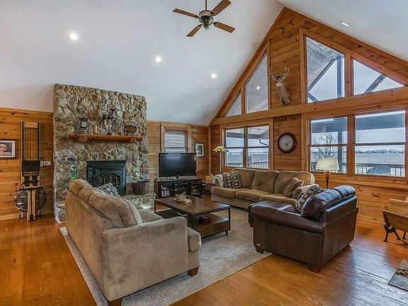 Finally! For those of you who have been searching for that perfect log home in the country, yet within 30 minutes of your place of work, itâs here. This pristine, 4 bedroom, 3 bath home built in 2006 offers an open and up-to-date floor plan with the charm of the country but the amenities of suburban properties. Wide planked pine floors, custom knotty alder cabinets, floor to ceiling stone fireplace, and soaring windows are just a few of the features that make this home unique and inviting. An expansive covered deck overlooking the stocked pond is an excellent spot to relax in the evenings and watch the fireflies. Work from home or enjoy a good book in the loft office area while still enjoying the view. The main floor master bedroom is ample in size and is adjoined by the master bath with double vanities, walk-in closet, whirlpool tub and separate shower. The lower walk-out level consists of the 3rd and 4th bedrooms, a full bath, spacious family room with second fireplace, wet bar area and a 29x21 THEATER ROOM under the two car garage (all theater seating and projector related equipment remain). An additional finished room on this level could serve as a 5th bedroom with the installation of an egress window. This home is situated on 11 plus acres on a PAVED road eight miles north of Highway 96. This home has been meticulously maintained and is move-in ready. Make an appointment today!