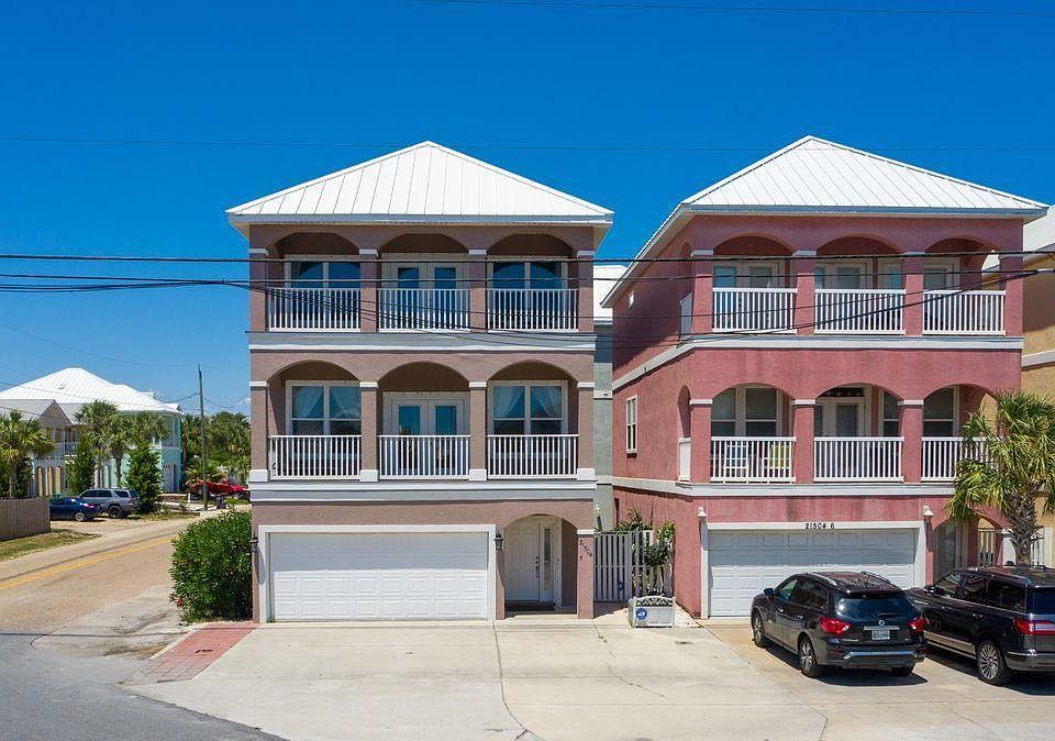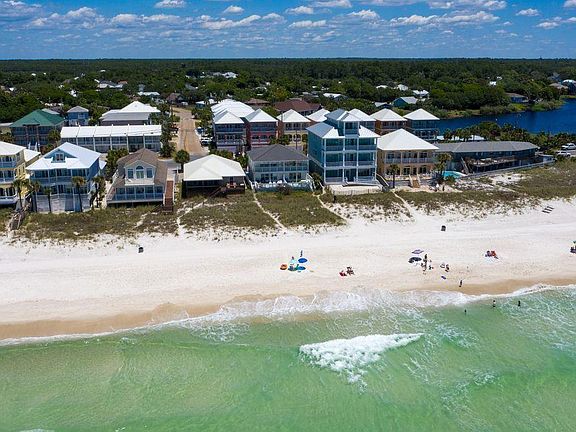 BRAND NEW LUXURY VINYL PLANK FLOORS JUST INSTALLED! Gulf views abound from every floor of this spacious beach home situated on a corner lot directly across from private gated beach access. Located just one row off the beach, this home features an attached 2-car garage for added convenience, plus lake privileges and a community pool just behind the home. With living spaces on each floor, this home has plenty of room for large families and is an ideal rental prospect. Additional features include hardwood and tile floors throughout, granite countertops, and more. The 2nd floor master suite boasts a luxurious private en suite bath with a soaker tub, a separate dual-head shower, and his & her vanities. This home sells fully furnished and ready for immediate personal enjoyment or rental use.