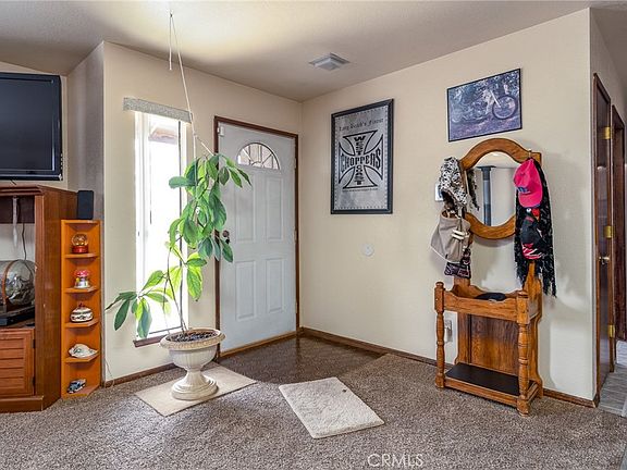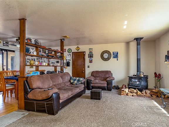 Welcome to our cozy home in Apple Valley. This comfortable home features 1296 sq. ft, 2 bedrooms and 2 bathrooms built in 1984 on a 22,000 sq ft corner lot. As you enter the front door you'll walk into the heart of the home where you will find a very inviting large family room with a cozy wood burning stove for your family to snuggle around on cold winter nights. Just beyond the family room you will find a unique feature wall of built in shelves that leads you into the dining room and a quaint kitchen that has a stainless steel overhead microwave (apx 1 Yr old), a stainless steel oven, a reverse osmosis drinking water system, a refrigerator and a window over the sink that that overlooks the enclosed patio. At the end of the kitchen are fold out doors that open into a laundry closet and a door that leads back into the hallway. As you head down the hallway from the family room immediately to the left is a good size bedroom and immediately to the right is an entrance to the laundry/kitchen area, just beyond kitchen/laundry area to the right is a full bathroom and a few linen cabinets. Continuing down to the end of the hallway you will find a good sized master bedroom that overlooks the beautiful mature trees in the front yard that will keep the room cool during the hot summer and master bathroom with a walkin in shower and ample closet space. This property offers RV parking with hookups and a 50 amp plug, a storage shed with extra storage beside the storage shed, Rainsoft Water treatment system, lots of mature trees including 8 fruitless mulberry trees in the front yard, walnut and pomegranate trees in the backyard. The backyard also features an enclosed patio for cooking and enjoying time out in the fresh air with your family. Attached is a 2 car garage off of the dining/family room area. Property is in the city of Apple Valley sewer .Extra enclosed storage 7×14 ,,complete finish garage,, with built in cabinets , kitchen upgraded can lighting Check out our 3D and drone pictures