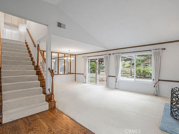 **Back on the market - buyer did not perform.**. Welcome home to this charming 4 bedroom/3 bath 1645 sf Tudor with beautiful, secluded backyard garden in prime Lake Forest. Lovingly cared for by the original owner, this home features many upgrades including a 40 year roof (with 20 years left), newer water heater (installed in 2017), newer furnace (installed in 2012), newer HVAC (installed in 2012), newer double paned vinyl windows throughout (installed in 2012), front yard pavers and luxury turf (installed in 2014), brand new LVP flooring in kitchen and breakfast room and new exterior paint (within the last year). The living room boasts a cathedral ceiling, gas woodburning fireplace, an elegant staircase and a wall of windows to the lush backyard. Downstairs bedroom and full bath and upgraded kitchen (in 2012) with brand new LG stainless refrigerator with ice maker (included), electric cooktop/range and plenty of storage. The backyard is tranquil and serene with a large covered patio and beautiful, terraced areas of trees and shrubs. There is a private sun deck on the hillside and the entire yard backs up to open space. There is a separate laundry room added by the owner with counter space for folding as well as cabinets. The 2 car garage offers tons of storage with custom built ins, plus a 2nd refrigerator and area for work bench. Great schools. No HOA. Hurry and snatch up this gem before it's gone!