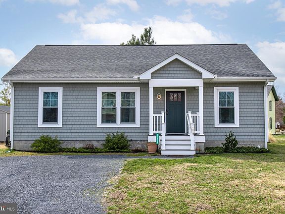 Nestled in the heart of Tilghman Island, this charming cottage was built in 2020. The home features an abundance of natural light creating an inviting atmosphere throughout the open floor plan of this home. The kitchen features tile floors, granite counters, and a stylish island with bar seating. Laminate wood floors flow seamlessly through the living room and bedrooms. The split floor plan ensures privacy with the primary suite on one side, offering a double vanity sink, shower, and a spacious walk-in closet. On the opposite side of the home, two additional bedrooms and a full bath. Enjoy the outdoors on the large screen porch, perfect for crab feasts, or gather around the firepit area. A separate shed is perfect for storage of your outdoor hobbies or lawn equipment. With proximity to restaurants, numerous boat landings, prime fishing spots and the perfect central location for boating to St. Michaels, Kent Island, Oxford, Cambridge and Annapolis this home offers a perfect blend of comfort and coastal living.